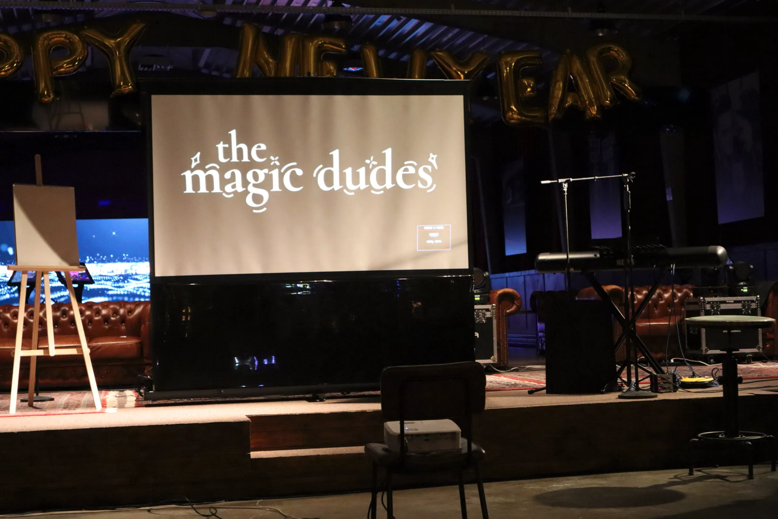 De goochelaars Magic Dudes op Oudejaarsavond! Het goochelduo speelde op Oudejaarsavond als één van de acts voor een volle zaal in Project 13 in Bornem, en verbaasde het publiek met hun maffe en komische acts. Tot volgend jaar!